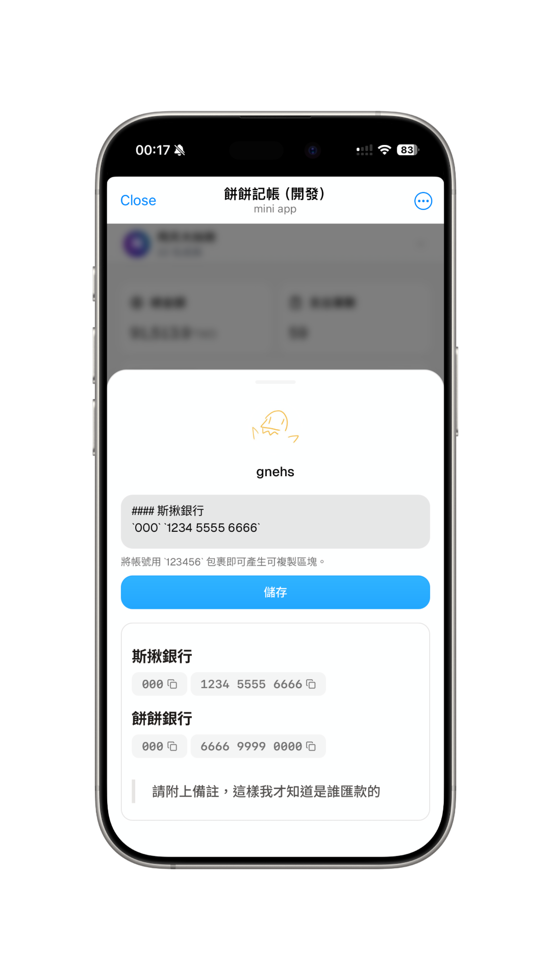 你可以使用此功能來保存自己的轉帳資訊,方便其他成員查看;亦可查看他人的轉帳資訊。