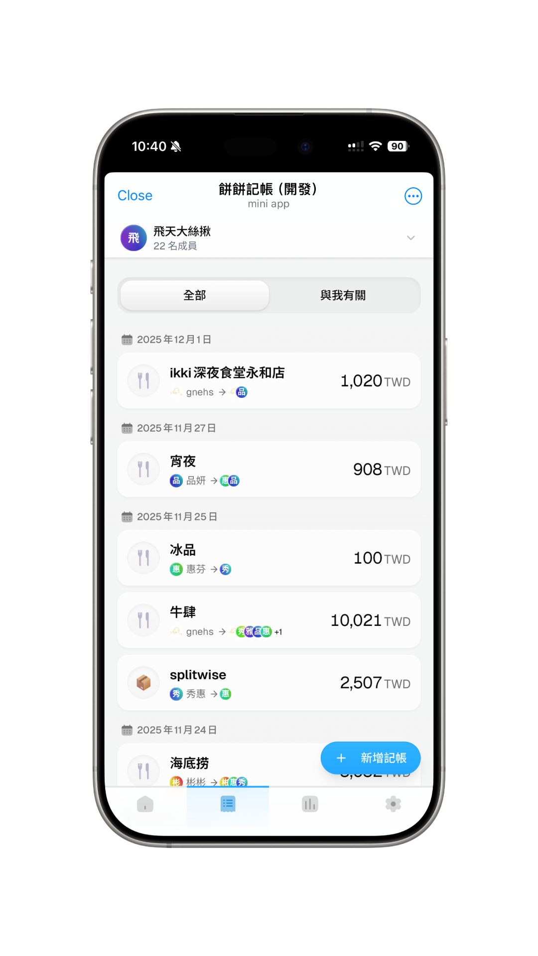 你可以在記錄頁面新增、查看和管理群組內所有的支出紀錄。