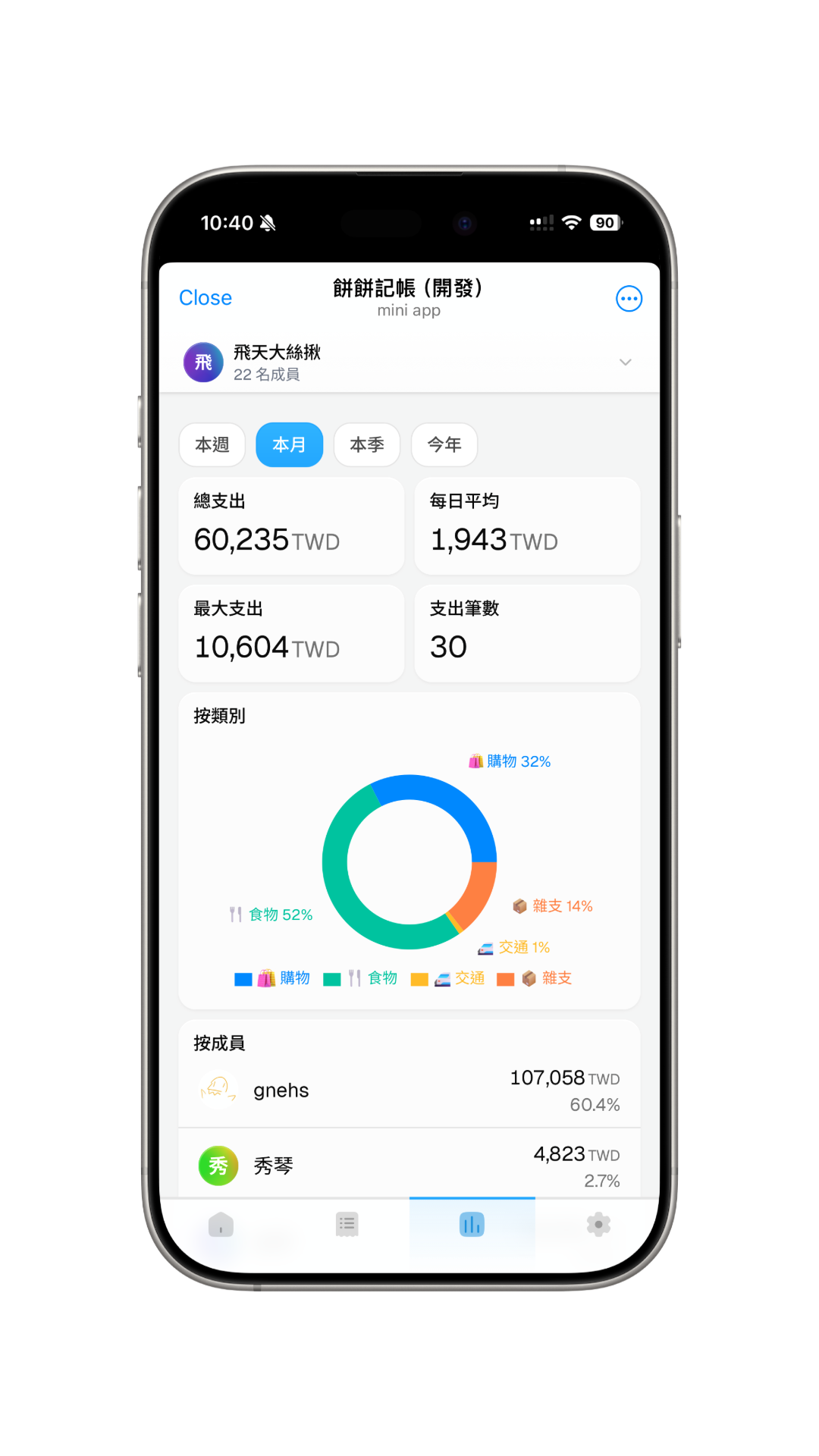 在分析頁面中查看各種帳單報表,幫助你更好地了解支出情況和趨勢。