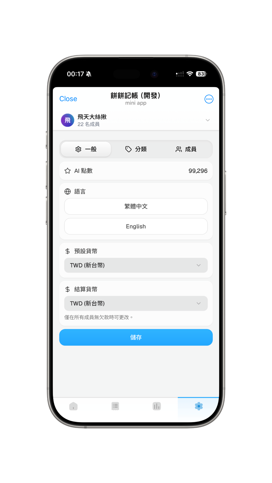 - 預設貨幣:用來設定系統顯示與記帳時的主要貨幣單位,可依需求隨時調整,例如旅遊期間切換為當地貨幣。